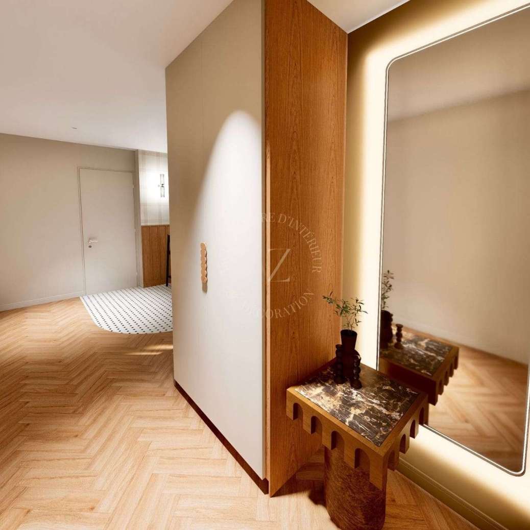 L’ensemble s’articule autour d’espaces pensés pour être traversés, utilisés et vécus au quotidien. Les lignes y guident le regard, les textures apportent du relief et les choix décoratifs installent une atmosphère simple et habitée. Chaque zone y trouve naturellement sa place, dans une démarche de valorisation immobilière.